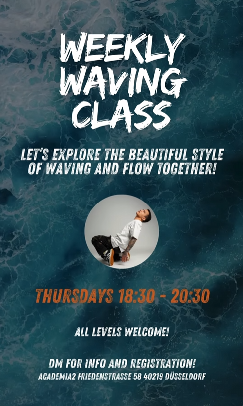 In this class, I will teach you the dancestyle "waving", a dancestyle that immulates the illusion of water-like flow inside and outside of the body.